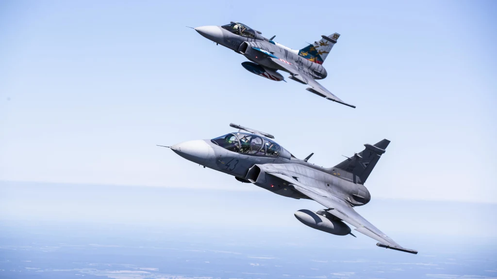 Swedish Air Force (SwAF) Saab Gripen combat aircraft intercepted Russian aircraft for the first time since the country joined NATO the day before. According to the Air Force, two B-1 Lancers from Ellsworth Air Force Base joined up with Swedish JAS 39 Gripen fighters Feb. 26 and in the Arctic and Baltic Sea regions, training for surface attack, air interdiction, and close air support scenarios.